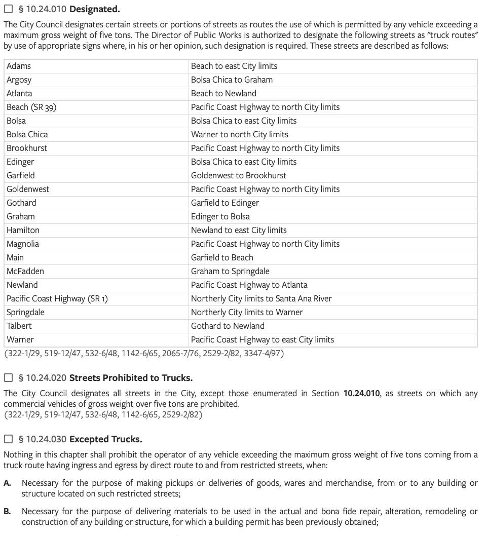 HB Truck Routes & R District